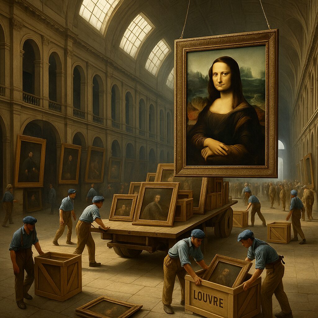 Even the massive paintings by Veronese and Delacroix were unframed, rolled, and packed away. The museum closed to the public “for renovations.”