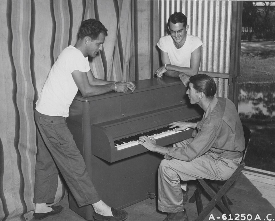 Letters from GIs describe the effect. One wrote about a muddy evening in Italy when a jeep hauled a khaki piano into camp and the entire unit gathered around it within minutes.